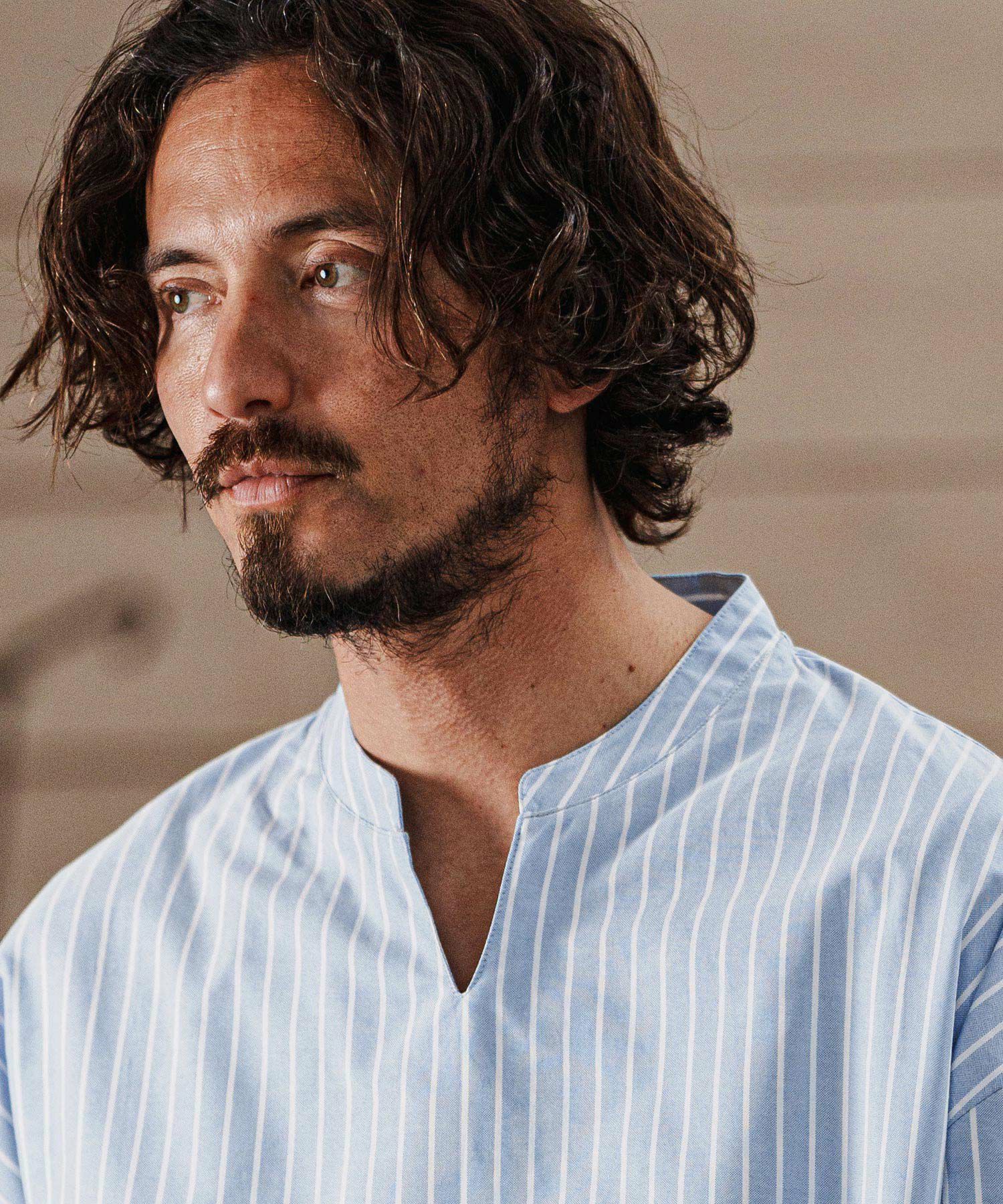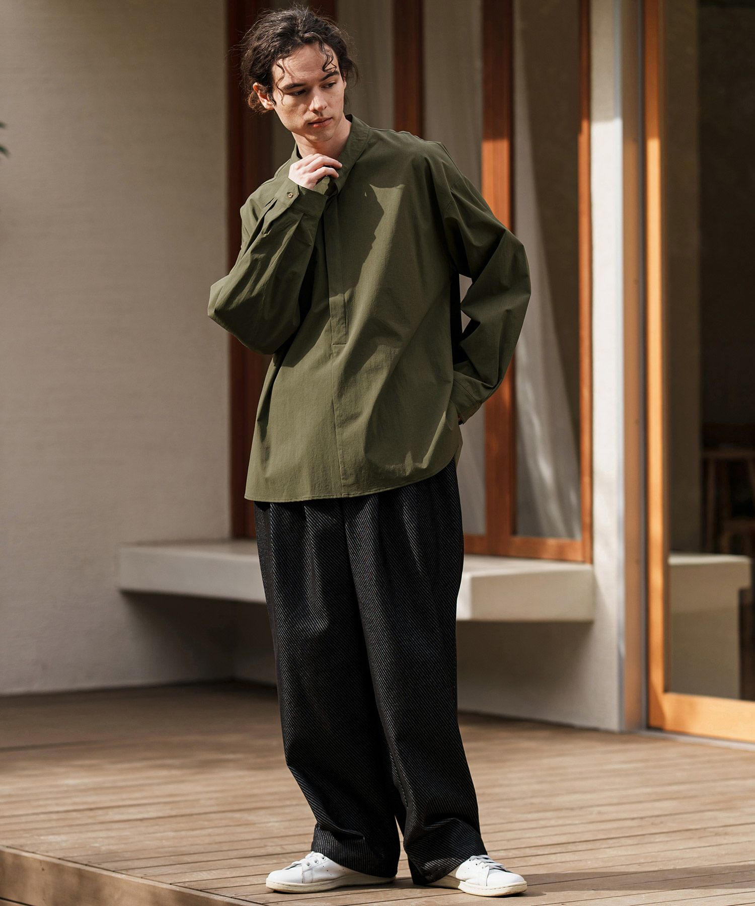 他の画像を見る felkod 【felkod(フィルコッド)】Zip Pocket Stripe Band collar Shirts バンドカラーシャツ(F25S070) ¥ 25,300 税込 お気に入りに登録する