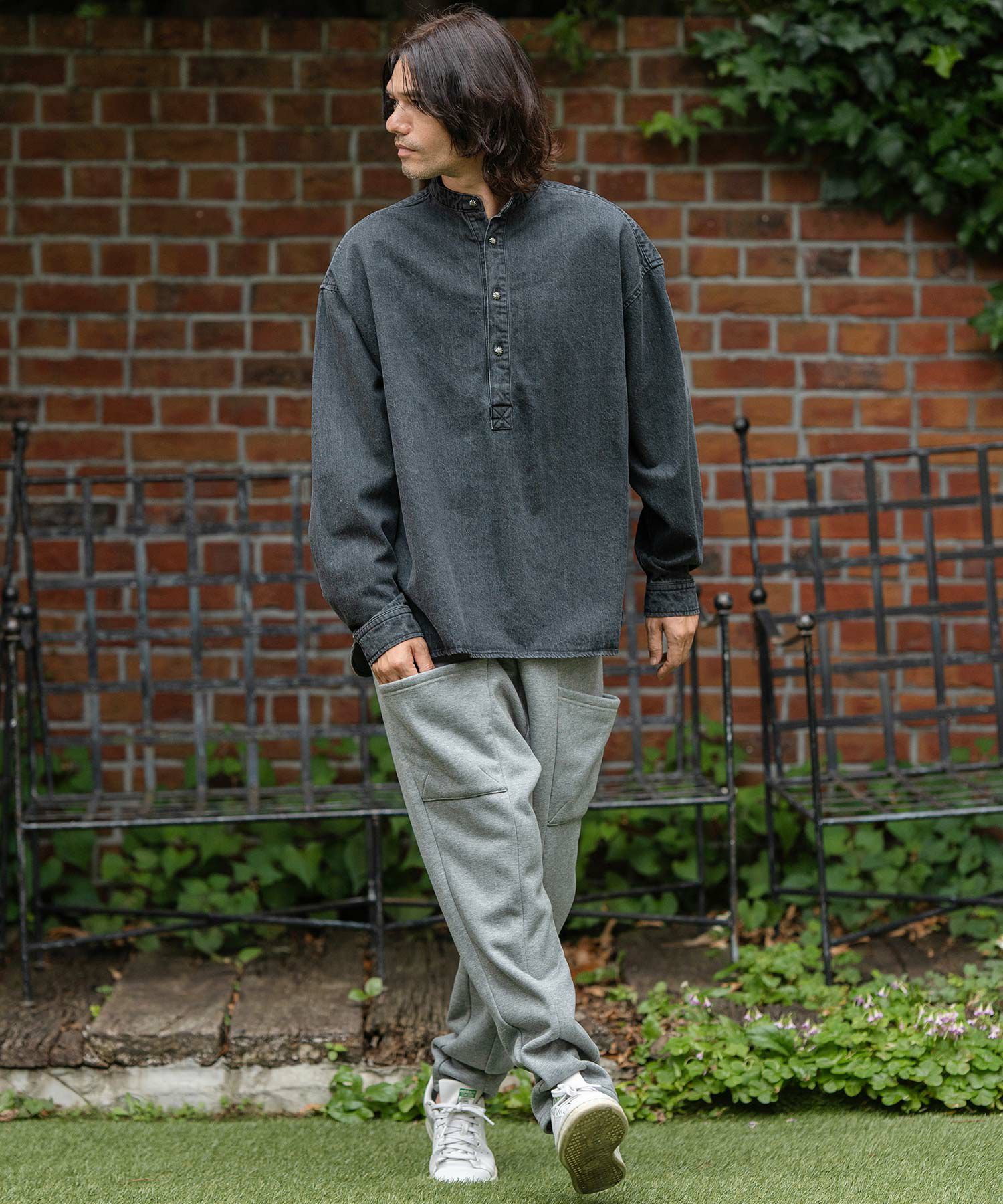 他の画像を見る GLIMCLAP 【GLIMCLAP(グリムクラップ)】Band collar & pullover shirt バンドカラーシャツ(18-004-gls-cf) ¥ 22,000 税込 お気に入りに登録する