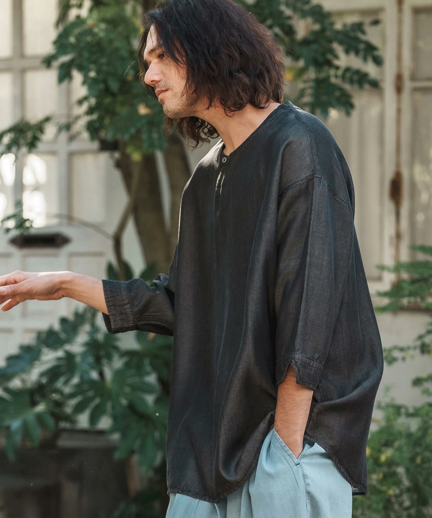 他の画像を見る CAMBIO 【CAMBIO(カンビオ)】Silky Cotton Linen Band Collar Fly Front 3-4 Sleeve Shirts 七分袖シャツ(MIU-251-028) ¥ 13,750 税込 お気に入りに登録する