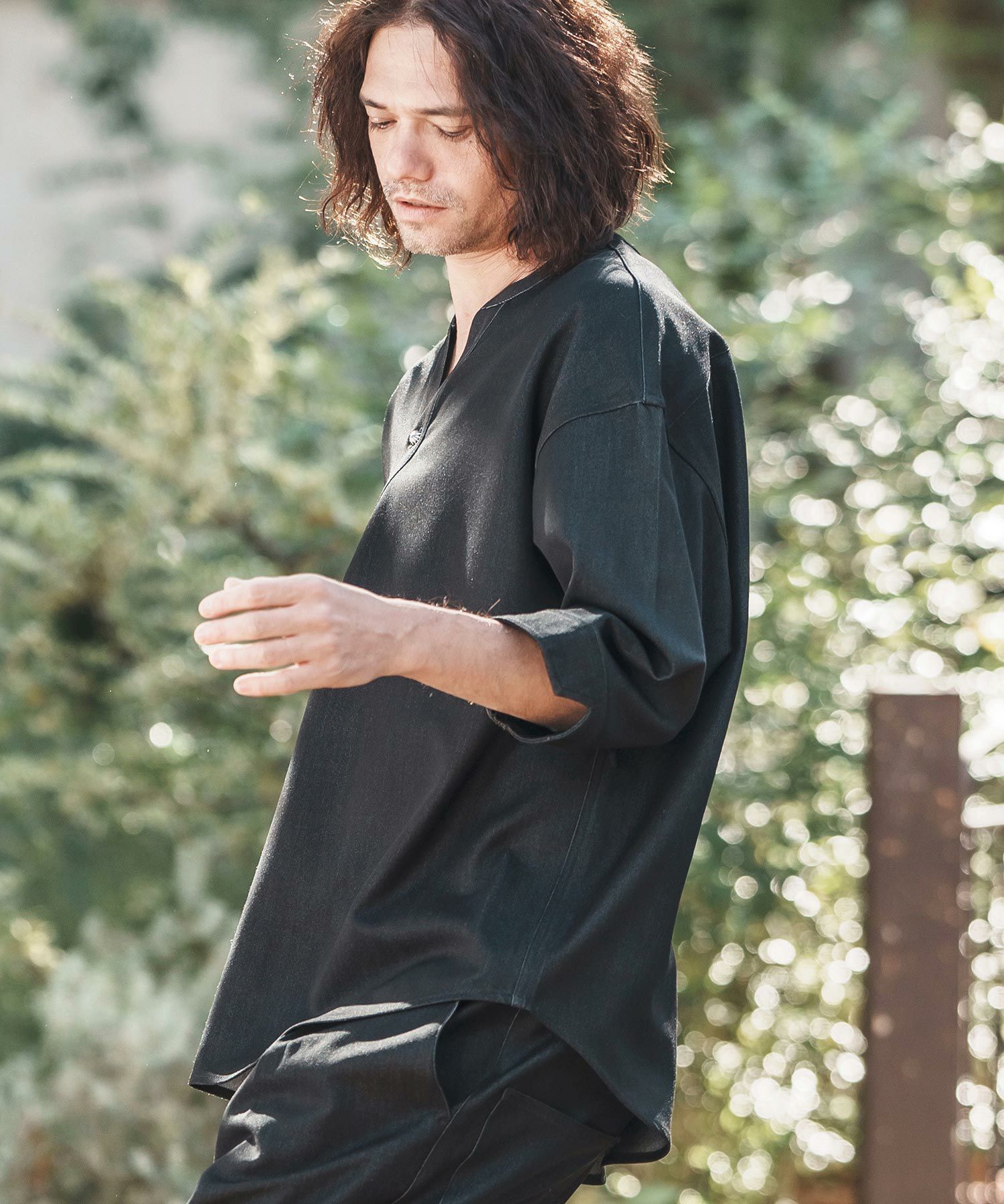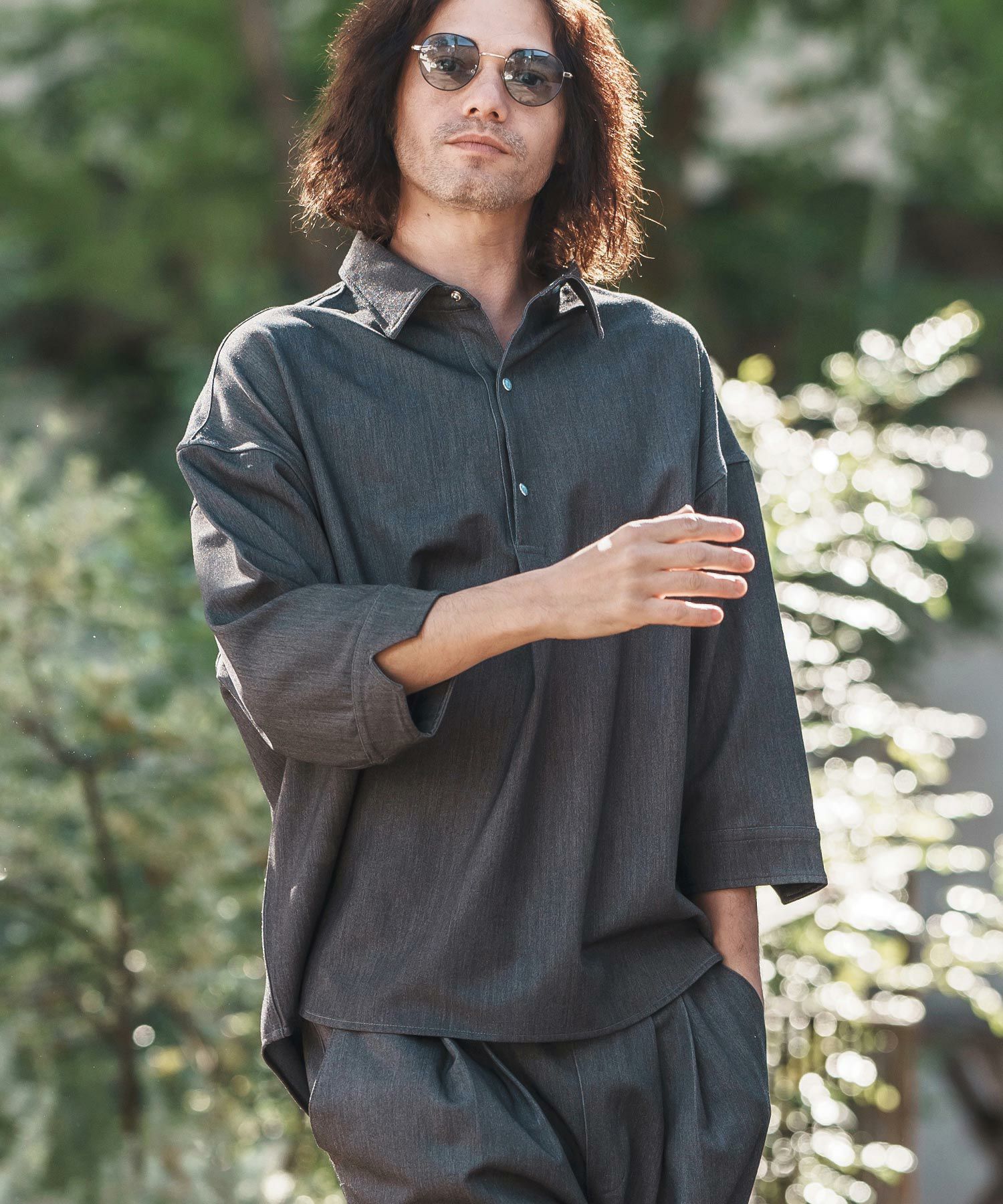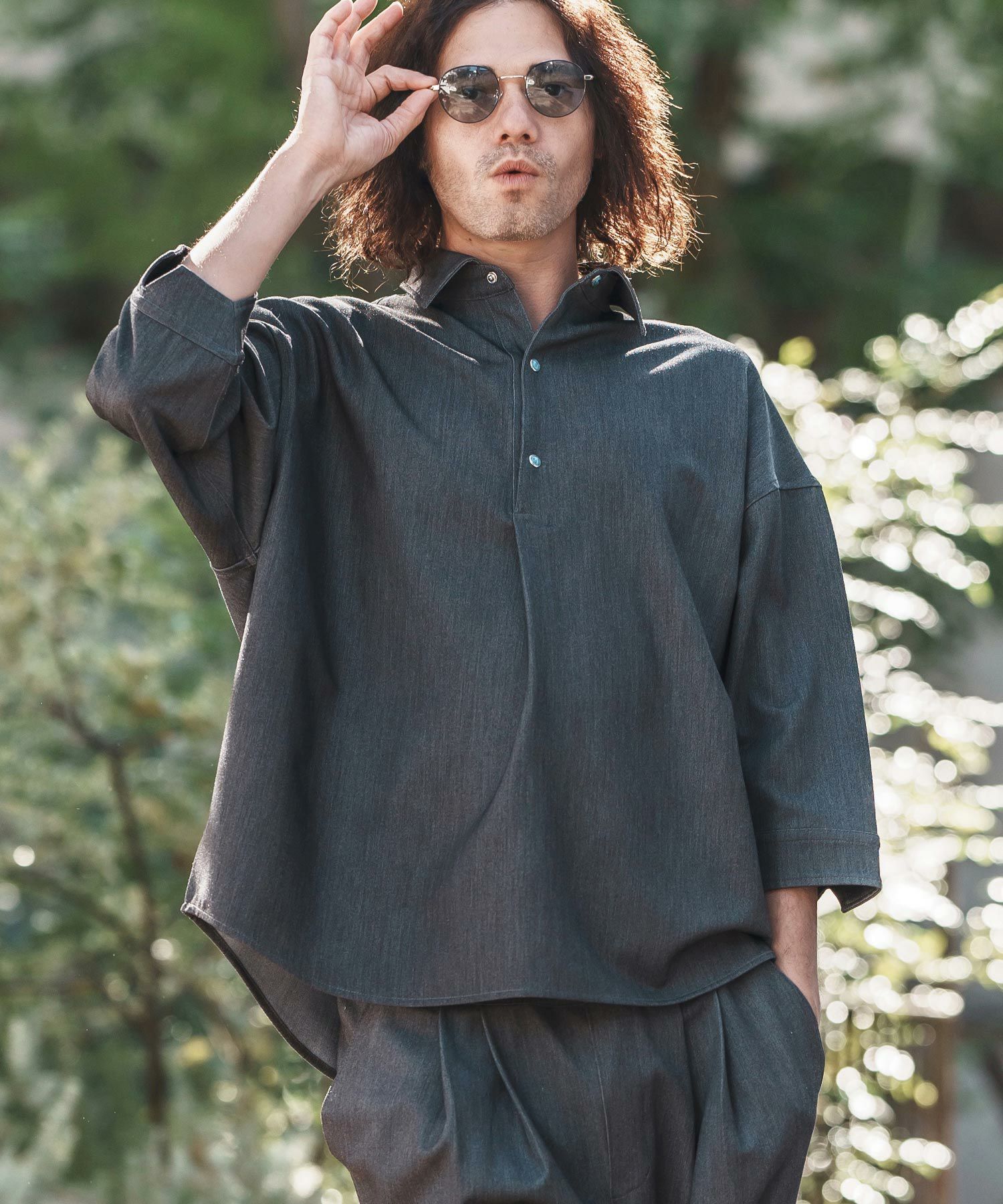 他の画像を見る CAMBIO 【CAMBIO(カンビオ)】Denim Like Drape Henley Neck Concho Button 3-4 Sleeve Pullover Shirts 7分袖プルオーバーシャツ(MIU-251-027) ¥ 13,750 税込 お気に入りに登録する