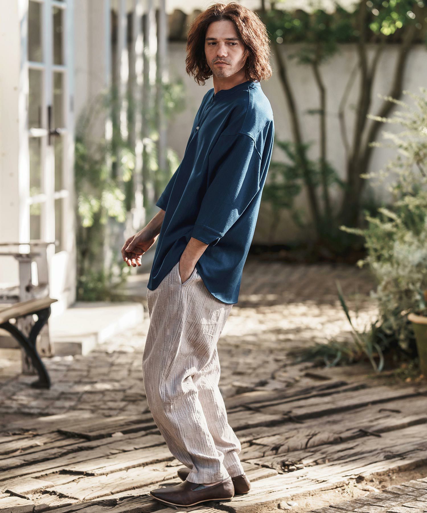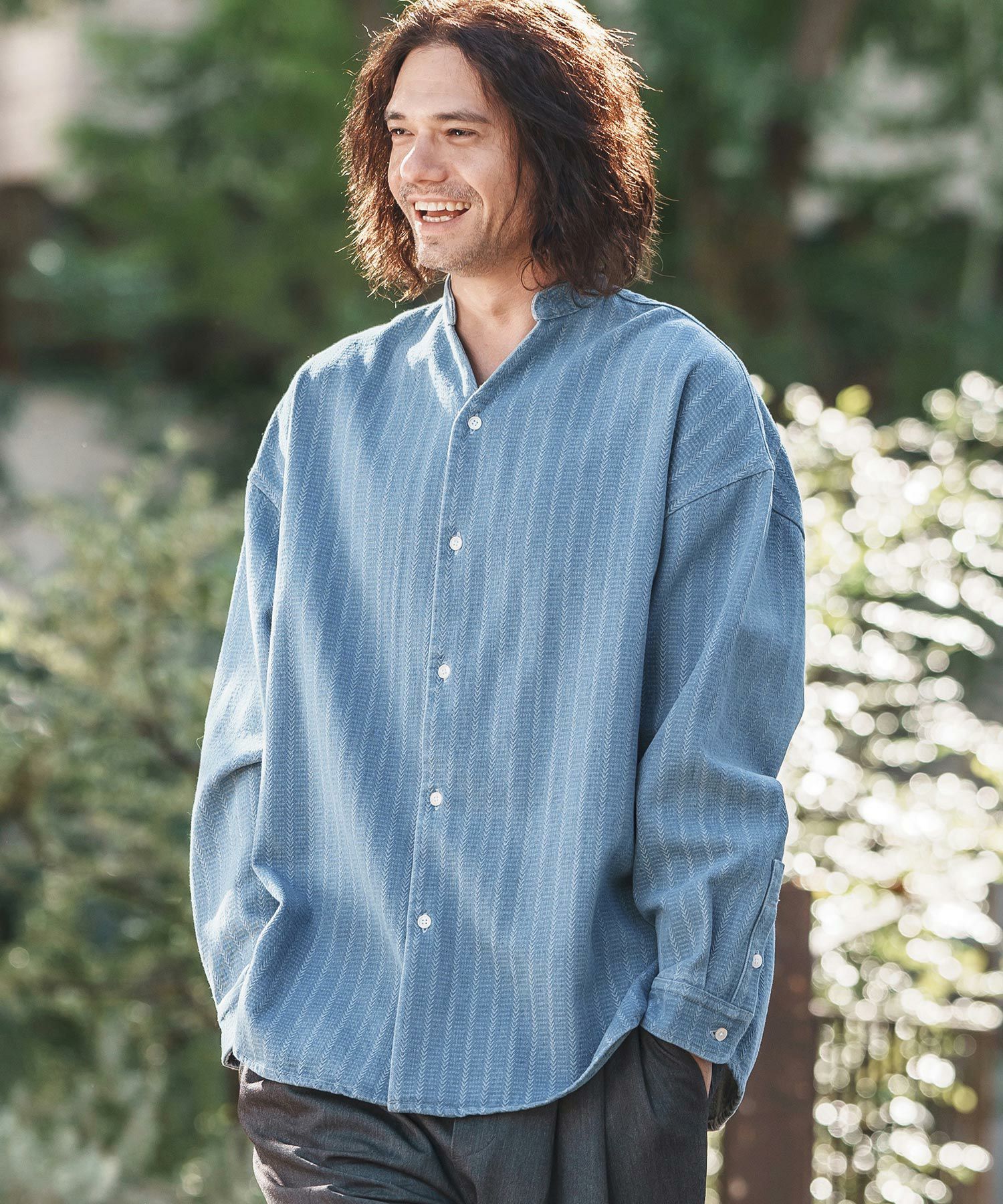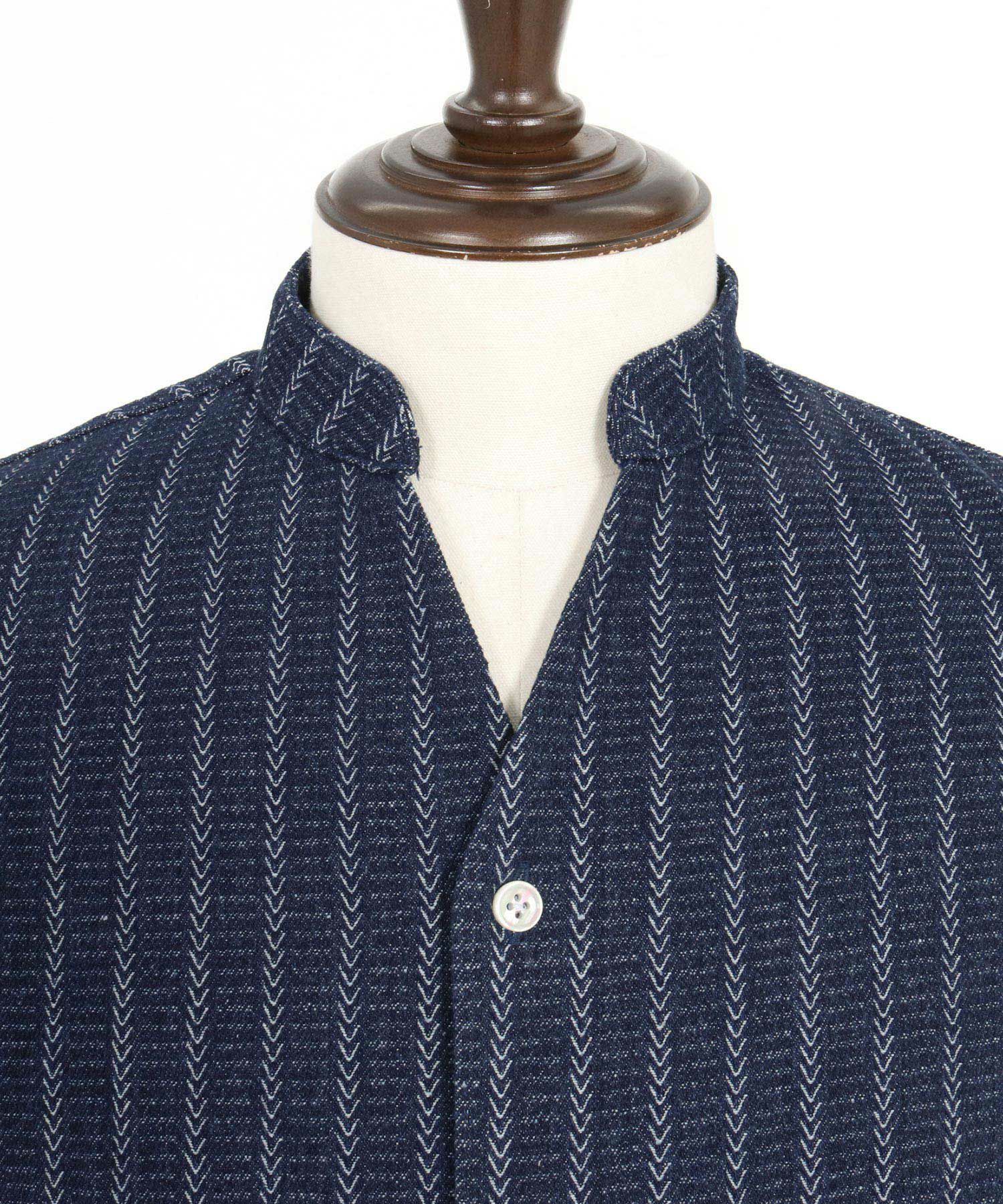 他の画像を見る CAMBIO 【CAMBIO(カンビオ)】Herringbone Stripe Jacquard Denim Band Collar Skipper Shirts デニムシャツ(MIU-251-033) ¥ 13,970 税込 お気に入りに登録する