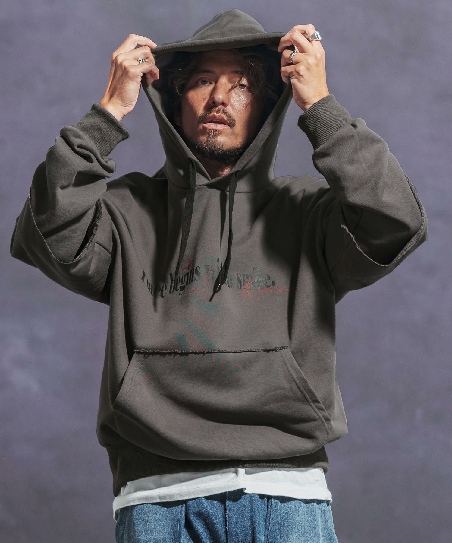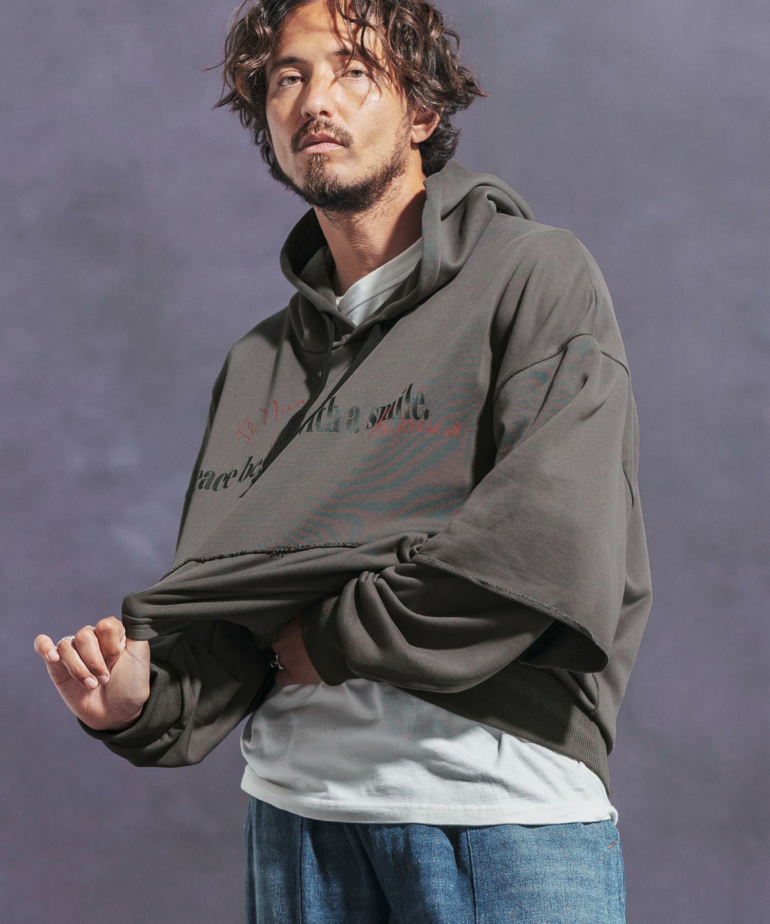 他の画像を見る SALE Jih Nunc 50%OFF【Jih Nunc(ジーヌンク)】レイヤード裏毛プリントプルパーカー(JIH-R1069) ¥ 14,300 ¥ 7,150 税込 お気に入りに登録する