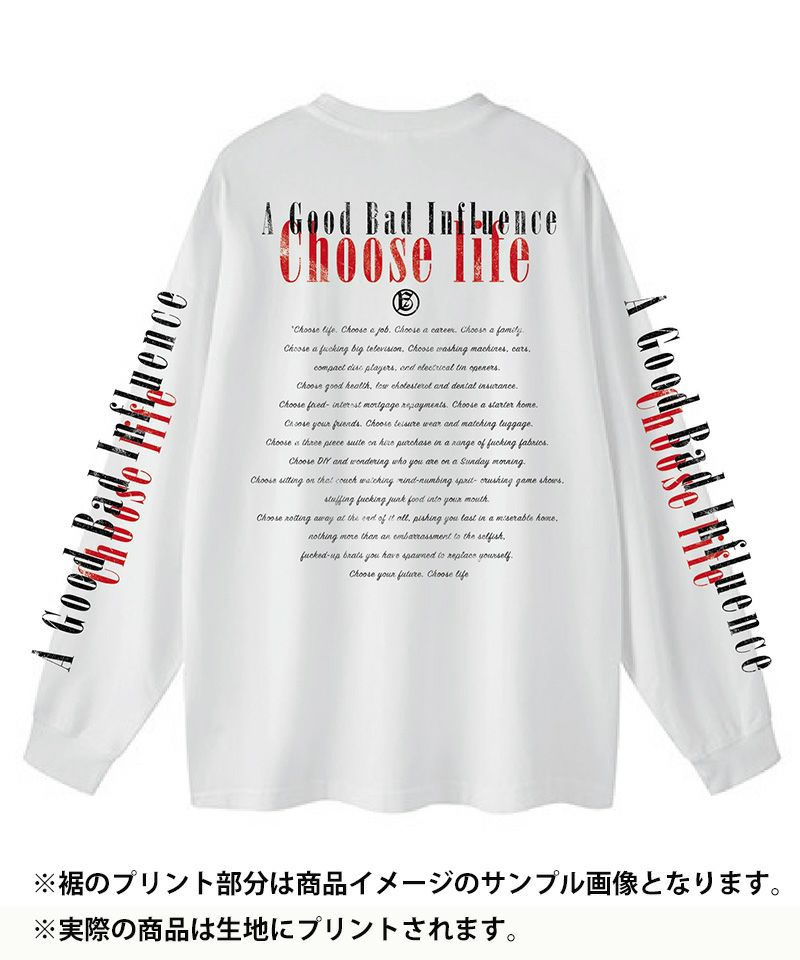 他の画像を見る SALE A Good Bad Influence 50%OFF【A Good Bad Influence(ア グッド バッド インフルエンス)】Choose Life LONG SLEEVE T-SHIRT カットソー(AGBI-24AW-LS03) ¥ 15,400 ¥ 7,700 税込 在庫無し お気に入りに登録する